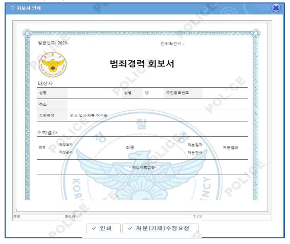 - 수사자료표 내용확인 (본인확인용도이며 제출하실 수 없습니다.)