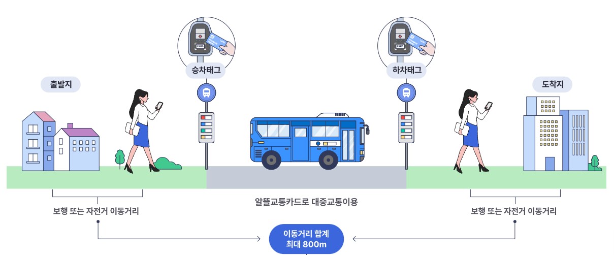 1) 대중교통 1회 이용 시에 이동거리는 최대 800m까지 인정이 되며 월 15회 미만 이용 시에는 적립액이 소멸됩니다.