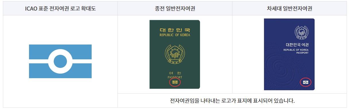 - 여권 내에 전자칩과 안테나를 추가하고 내장된 전자칩에 개인정보 및 바이오 인식 정보(얼굴사진)를 저장한 여권입니다.