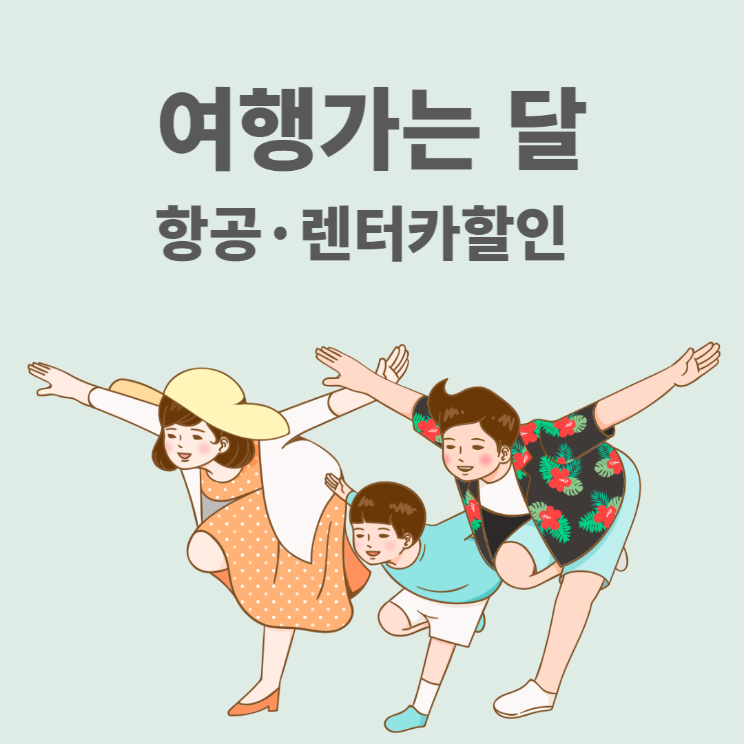 휴가 때 비행기와 렌터카 이용하시는 분들 많으시죠? 여행 가는 달의 할인혜택으로 국내 항공권 할인혜택과 렌터카 혜택에 대해 알려드리겠습니다. 할인혜택 꼭 챙기셔서 알뜰한 여행되시길 바랍니다.